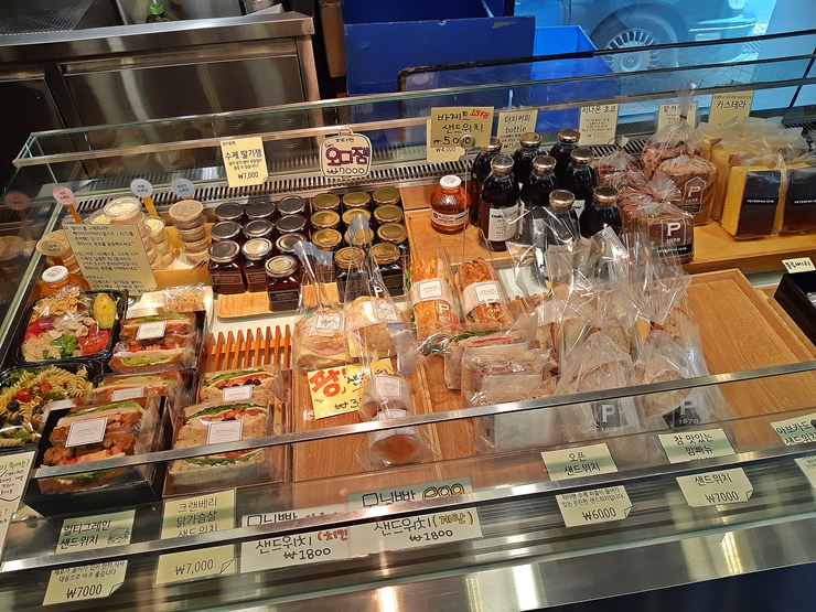 다른 한 쪽에서는 이런 신선상품을 판매하고 있다. 모닝빵 샌드위치를 살까 잠시 고민했지만 짝꿍과 함께 무화과 케이크를 사야 하니까 꾹 참았다.