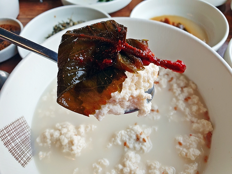 콩잎도 올려서 맛있게 냠냠. 콩잎은 깻잎고 다르게 질기고 풋내가 좀 나긴 하는데, 먹기에 거북함은 없다. 어떠한 반찬과도 맛있게 잘 어울렸던 순두부. 역시 맛있는 음식을 먹으면 그 날 하루가 보람차고 기분 좋고 행복해진다. 강릉에서 맛있는 순두부를 먹고 싶다면 한 번 가볼 것을 추천하는 곳이다.