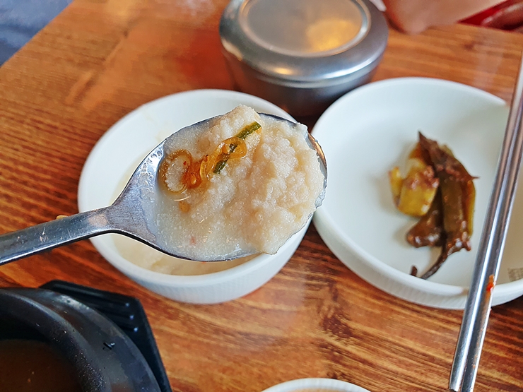 참으로 맛있던 비지. 간장을 살짝 올린 후 먹으면 그 맛이 배가 된다. 단품으로 팔아도 부족함이 없을 맛이다. 짝꿍 역시 이 비지가 참 맛있다며, 계속해서 먹었다. 내가 먹을 양이 줄어드는 것이 참 아쉬웠지만 그래도 맛있게 잘 먹는 짝궁에게 많이 양보했다.