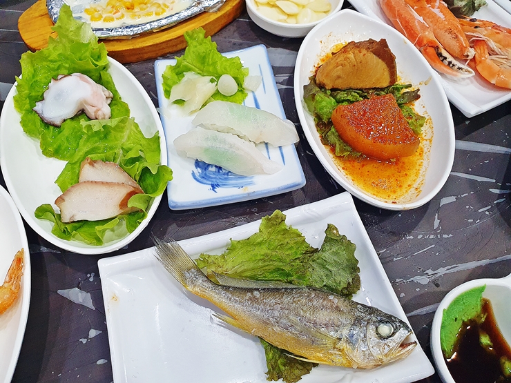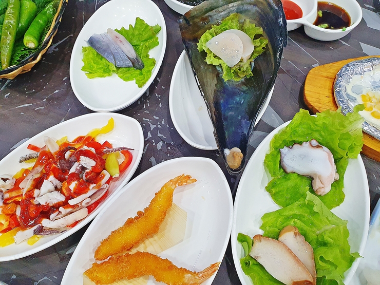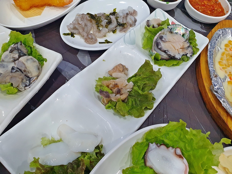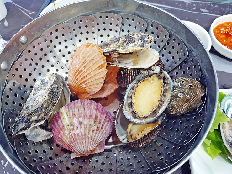 굴, 전복과 가리비찜. 미리 찐 것을 제공하는 것이 아니라 즉석에서 바로 쪄서 제공한다. 온기를 머금은 찜이 맛이 없을 수 없지. 소주를 반만 마셨지만 이 찜 앞에서는 그대로 무너지고 말았다. 부드럽고 고소한 찜은 참으로 훌륭하다. 아, 그 맛이 또 생각나는구나.