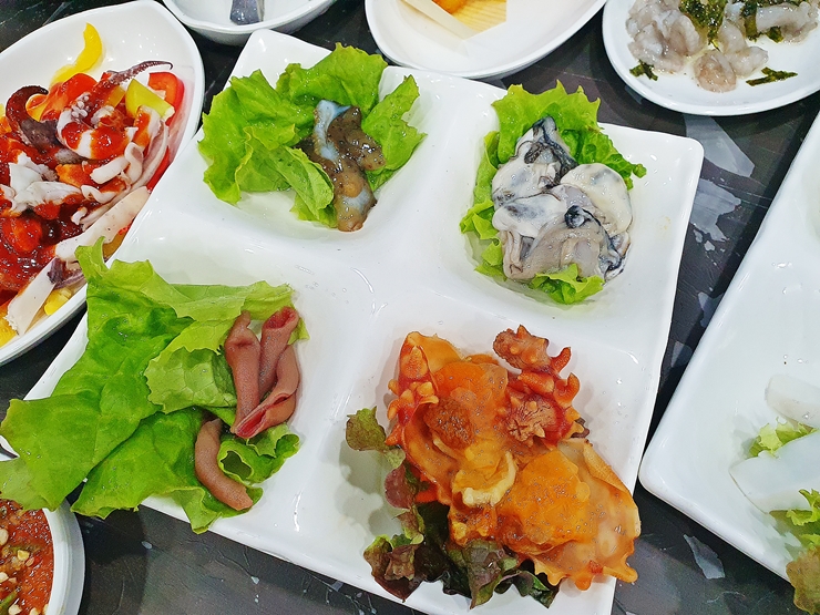내가 좋아하는 모둠 해산물. 해삼, 굴, 개불과 멍게가 나온다. 난 해산물 중에서 멍게를 가장 좋아하는데 적당히 쓰면서 달콤한 그 특유의 맛이 입에 착착 달라 붙는다. 같이 간 일행이 멍게를 먹지 않아서 온전히 내가 다 먹을 수 있었지. 후후. 대신 난 일행에게 굴을 양보했다.
