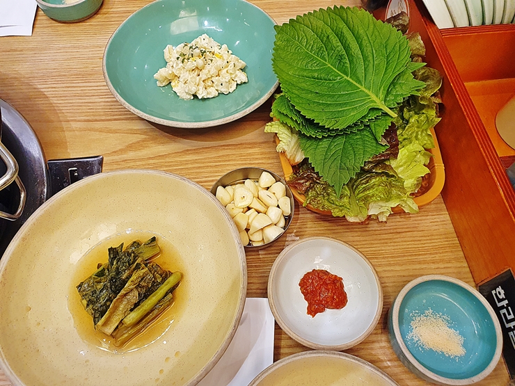 여전한 샐러드 바(?) 한라담의 장점은 이렇게 채소를 마음껏 먹을 수 있다는 것이다. 요새 채소 값이 계속해서 올라가는데 이렇게 본인이 좋아하는 채소를 먹을 수 있다는 것은 큰 장점이다. 나 채소를 그리 좋아하지 않지만 고기를 먹을 때는 많이 먹는데, 이런 면에서 한라담이 참 좋다.