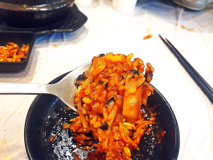 잘 눌러 붙은 볶음밥을 맛있게 냠냠. 아, 이 볶음밥 맛이 기가 막히다. 맛있는 고기와 김치가 들어갔으니 맛이 없을 수가 없다. 이런 재료로 볶음밥을 맛없게 만든다면 그것이 바로 신의 손을 가진 자라 할 수 있을 것이다. 중계본동에는 먹을 것이 많이 없는 편인데, 이런 곳을 발견해서 참 다행이다. 중계본동에서 수준 높은 돼지 고기를 먹고 싶다면 한 번 방문할 것을 추천하는 곳이다.