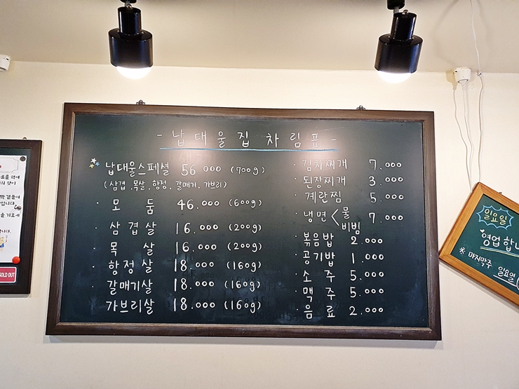 오랜만에 돼지 고기가 먹고 싶어서 짝꿍과 어디서 먹을까 잠시 고민을 하다가 찾아간 납대울집. 납대울은 어쩌고 저쩌고라는 뜻을 가지고 있다고 하는데 딱히 중요한 것 같지 않아서 금방 까먹었다. 이른 시간에 찾아갔는데 막 개시를 한 것 같았다. 그래서 기분 좋게 룰루랄라 냉큼 들어갔다.