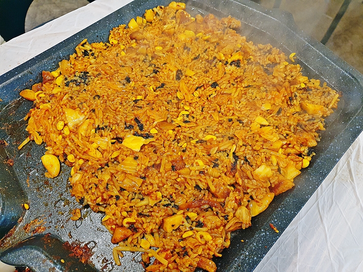 빠르게 다 먹은 후 한국인의 후식인 볶음밥을 먹었다. 평소였더라면 볶음밥을 하나만 주문했을텐데 이날 고기 맛이 너무 좋아서 술을 많이 마셔서 그런지 나나 짝꿍이나 모두 볶음밥이 땡겼다. 그래서 두 개를 주문했지. 두 개를 주문해서 그런지 양이 상당히 많다.