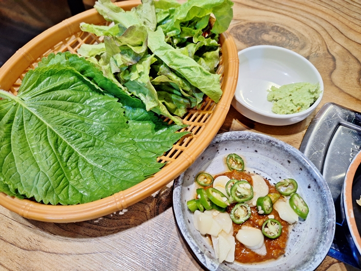 세꼬시를 주문하니 기본으로 나오는 상추, 깻잎, 와사비와 쌈장. 쌈장이 일반 쌈장이 아니라 여러가지가 가미 된 맛이 느껴지는 쌈장이었는데 맛이 기가 막혔다. 그래서 쌈장을 따로 크게 하나 요청해서 나 혼자 맛있게 먹었지.
