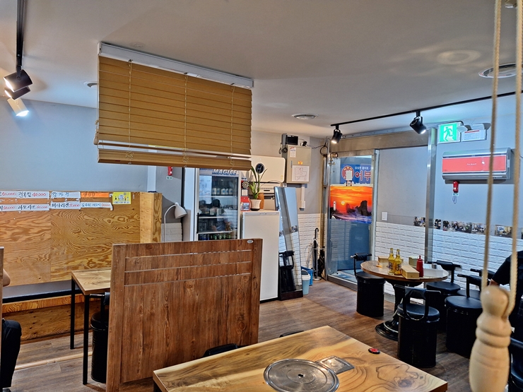 내부 모습. 퇴근한 후에 바로 찾아왔는데 반 이상의 자리가 차있었다. 그래서 최대한 고객이 없는 곳을 찍었다. 대화하는 것을 들어보니 무슨 동호회에서 온 것 같았다. 으쌰으쌰 운동 어쩌고 저쩌고 하는 소리가 들렸는데 관심이 없어서 잘 듣지 않았다. 내부는 그리 넓지 않지만 마냥 좁지도 않다.