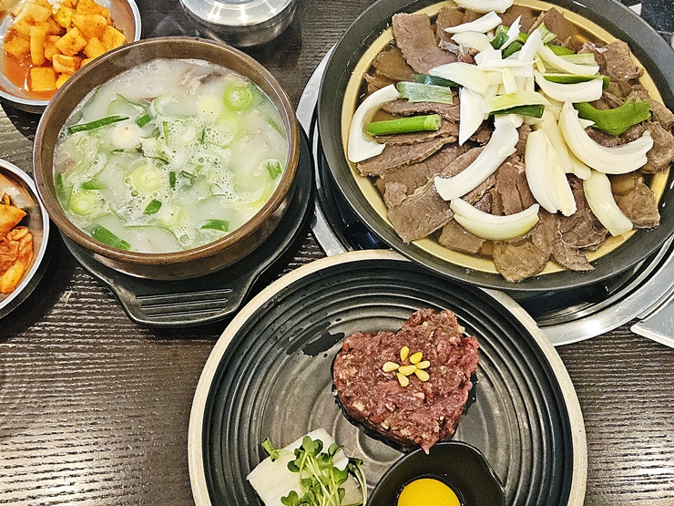 고기가 있으니 당연히 항공 샷을 찍어야지. 이 사진에서 보니 육회 하트 모양이 제대로 잘 나와 있구나. 이 사진을 올리기 위해서 일부러 곰탕 사진을 늦췄다. 후후. 항공 샷은 언제 봐도 참 아름답기 그지 없다. 이런 아름다운 사진을 많이 찍기 위해서 꾸준히 고기를 먹어야지.