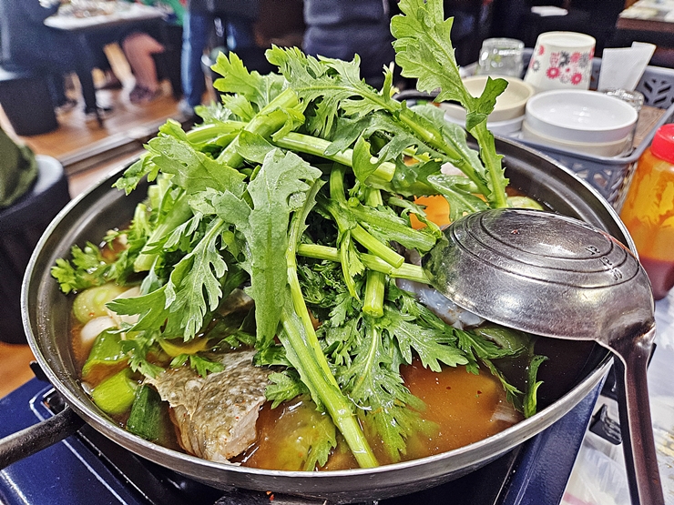 회를 먹을 때 매운탕을 추가하지 않을 수 없지. 그래서 추가한 서더리 매운탕. 서더리는 생선 잡뼈를 말하는데 아무거나 들어가는 장점이 있다. 그래서 우리가 주문하지 않은 우럭도 들어 있었다. 우럭 매운탕은 시원한 맛이 나고, 광어 매운탕은 단 맛이 도는데 이것저것 다 들어가니 이런저런 맛을 다 느낄 수 있었다. 마포구에서 합리적인 가격으로 푸짐한 활어 회를 먹고 싶다면 마포농수산물시장을 한 번 가볼 것을 추천한다.