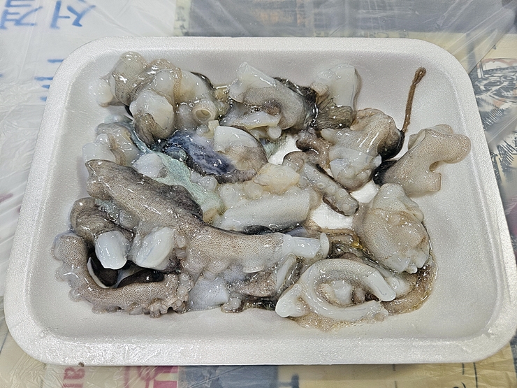 아름다운 산낙지의 모습. 엄연히 따지면 몸이 잘렸기 때문에 죽은 낙지이지만 산낙지로 부르기로 한다. 산낙지는 처음 먹을 때는 특유의 짭짤한 맛을 느낄 수 있고 오래 씹으면 고소함을 느낄 수 있다. 난 입에 달라붙는 느낌 때문에 그리 즐겨 먹지는 않지만 이날은 많이 먹었다.