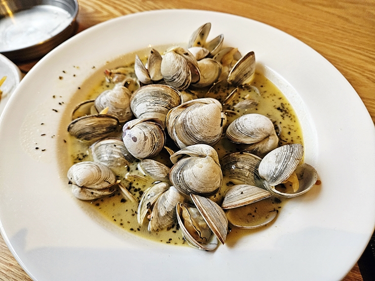 조개찜. 흔하게 볼 수 있는 바지락 술 찜이 나올 거라 생각했는데, 바지락 술 찜보다 깊고 고소한 맛이 났다. 거기에 강한 감칠맛까지 느껴졌다. 아, 이거 제대로 소주 안주인데. 강한 맛이 나는 요리를 먹을 때 소주가 생각나는 것을 보면 나도 이제 어엿한 어른이 되었나보다.