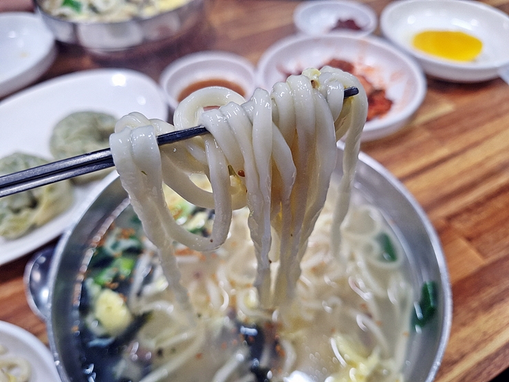 만두를 겉절이와 함께 먹으니 그 맛이 더욱 좋아진다. 수준 높은 만두와 수준 높은 겉절이가 만나니 맛이 없을 수가 없지. 참으로 행복하고 유쾌한 조합이 아닐 수 없다. 만두를 두 개 정도 먹으니 칼국수가 나왔다. 적당히 배가 부를 때 나오는 센스. 내가 많이 칭찬해요.