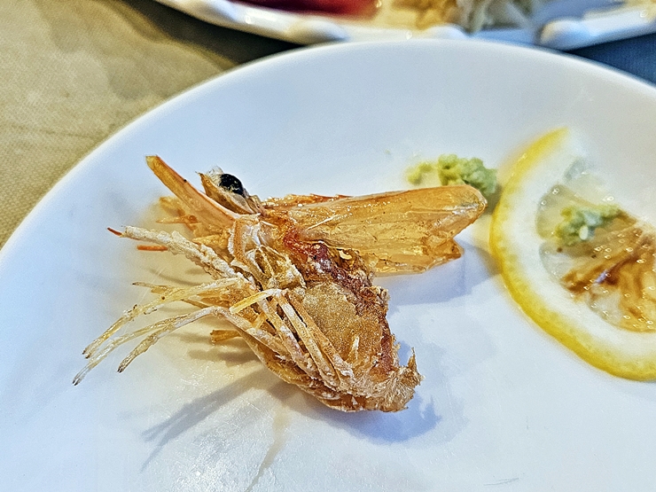 인상 깊었던 새우 대가리만 따로 찰칵. 새우 대가리를 바삭하게 잘 튀겨내서 먹기에 불편함이 전혀 없다. 새우 대가리에는 새우 특유의 고소함이 농축 되어 있는데, 그 맛이 참으로 깊고 진하다. 이런 것은 맥주와 소주 등 그 어떤 주류와 먹어도 잘 어울린다. 새우 대가리 내가 참 맛있게 잘 먹었어요.