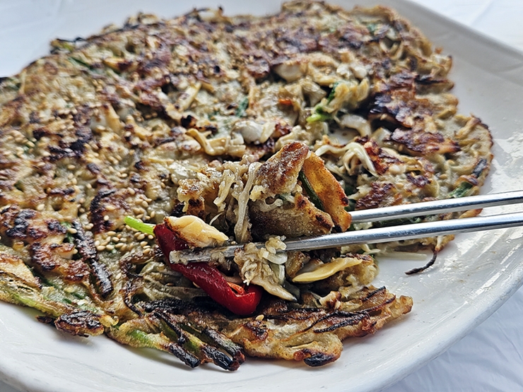 얇지만 있을 것은 다 들어 있는 메밀 바지락 전. 바지락과 함께 팽이 버섯도 들어 있는데 이 팽이 버섯이 바지락 전과 상당히 잘 어울린다. 한 입 먹자마자 막걸리가 생각났지만 막거리를 마시면 하루 일정을 다 망치기 때문에 꾹 참았다. 흑흑. 이럴 때는 돈 많이 벌어서 운전 기사를 고용하고 싶구나. 두고 봐라. 이번 주에 로또만 되면.