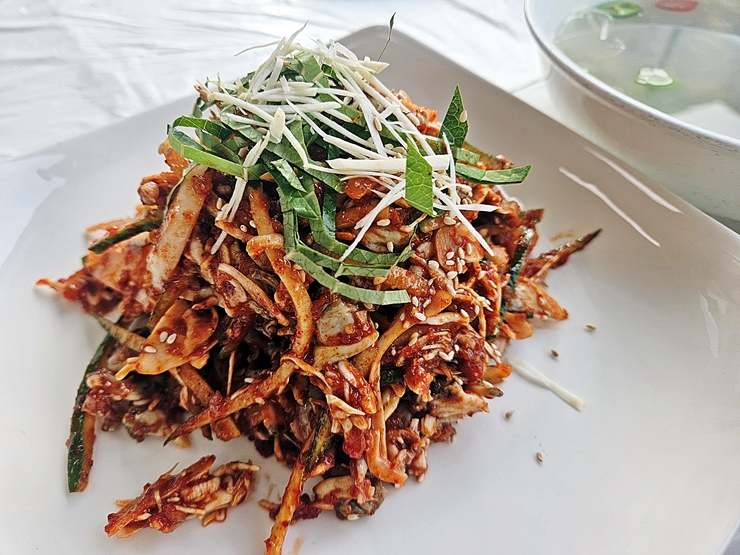 바지락 회 무침. 나는 신 맛을 잘 먹지 못하는 편이기 때문에 많이 먹지 않았다. 새콤한 맛이 강하지 않았지만 이건 내 취향이기 때문에 어쩔 수 없다. 식욕을 돋우는 새콤함이 참 좋았는데, 이 바지락 회 무침이 좀 더 빨리 나왔더라면 다른 음식들을 더 맛있게 먹었을 것 같았다. 상당히 유명세가 높은 변산명인바지락죽. 부안군에서 맛있는 바지락 요리를 먹고 싶다면 한 번 가볼 것을 추천하는 곳이다.