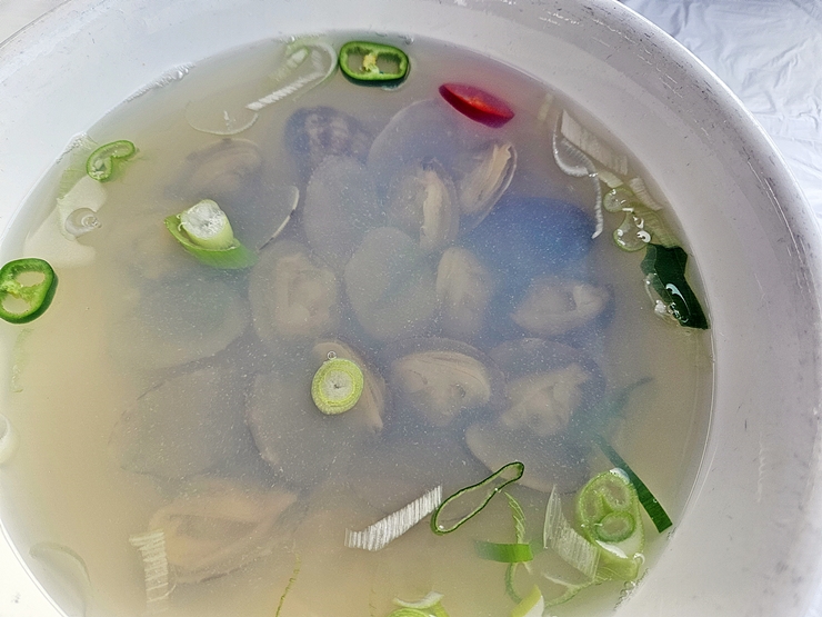 바지락이 한 가득 들어 있어서 여러 명이 나눠 먹어도 부족함이 없다. 깔끔하고 깊은 맛이 나는 바지락 국이다. 바지락 같은 패각류는 숙취 해소에 참 좋은데, 전 날 술을 마시지 않았음에도 불구하고 저절로 속이 풀리는 느낌이었다. 술을 마시고 왔더라면 더욱 큰 만족을 느낄 수 있었을텐데.