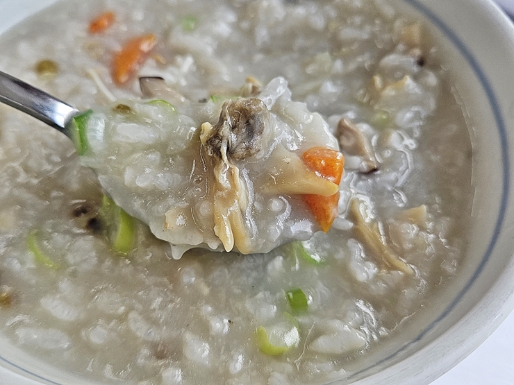 인삼 바지락 죽에도 상당히 많은 양의 바지락이 들어있다. 쌀이 부드럽게 잘 넘어간다. 간혹 못 만든 죽을 보면 쌀이 씹히는 경우가 많은데 변산명인바지락죽의 바지락 죽에서는 그러한 불쾌한 식감을 느낄 수 없었다. 음식을 짜게 먹는 사람이라면 조금 아쉬운 간이겠지만 그럴 때는 소금이나 간장으로 간을 맞추면 된다. 난 음식을 짜게 먹는 편이 아니기 때문에 아무런 양념을 넣지 않고 맛있게 먹었다.
