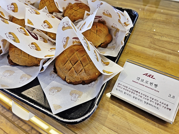 깔끔한 분위기의 슬지제빵소. 매장 안 쪽에는 찐빵을 만드는 곳이 있고 계산을 하는 곳이 연결 되어 있다. 가게 안에는 빵을 찌는 냄새가 솔솔 풍기는데 이 냄새가 상당히 향기롭고 식욕을 자극했다. 나는 빵을 그다지 좋아하지 않아서 어떤 빵을 파는지 확인한 후 최소한의 찐빵만 구매하기로 했다. 내가 먹을 것은 아니었고 주변 지인들에게 선물하기 위해 구매하기로 한 것이다. 역시 내 주변 지인들을 잘 챙기는 멋진 나.