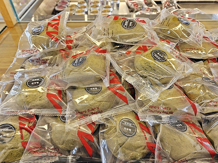 찐 쑥빵. 쑥빵은 은근히 꾸준한 인기가 있는 빵이다. 난 쑥을 그다지 좋아하지 않아서 사진만 한 장 찍었다. 사진을 찍은 후 이리저리 둘러보고 있을 때 고객들이 쑥빵을 조금씩 들고 가는 것을 보았다. 쑥은 몸에 좋은 영양소가 풍부하니 다들 건강을 잘 유지하길 바란다.