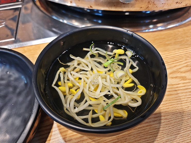 콩나물국. 개인적으로 콩나물국이나 오이냉국은 별로 좋아하지 않는 편인데, 홍춘천치즈닭갈비의 콩나물국은 굉장히 시원하고 맛이 깊었다. 전 날 술을 좀 많이 마셔서 그런지 저절로 해장이 되는 기분이었다. 그래서 셀프 리필바를 이용해서 한 번 리필을 해서 또 먹었지. 아 너 이 녀석. 내가 몹시 마음에 들어해요. 요새 술자리가 일주일에 세 번 이상 계속 되고 있는데, 술을 줄이고 건강식을 많이 먹어야겠다.