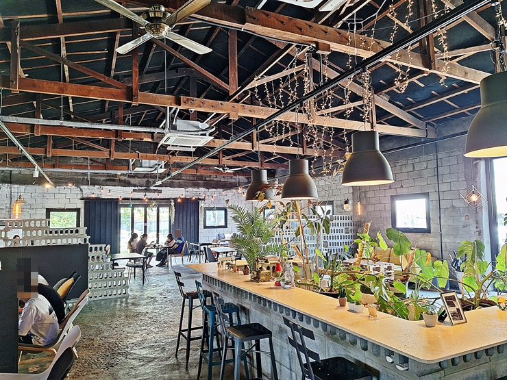 넓고 쾌적한 매장 내부 모습. 매장은 창고를 개조해서 만든 것 같은 모습이다. 바 테이블과 일반 테이블, 그리고 팔레트로 테이블을 만든 곳으로 구분 되어 있다. 가족, 커플 단위로 오는 고객들이 많은 것 같다. 개, 고양이, 이구아나나 파키케팔로사우르스 같은 반려동물 출입이 가능한 곳이기 때문에 개를 데려온 고객도 보였다.