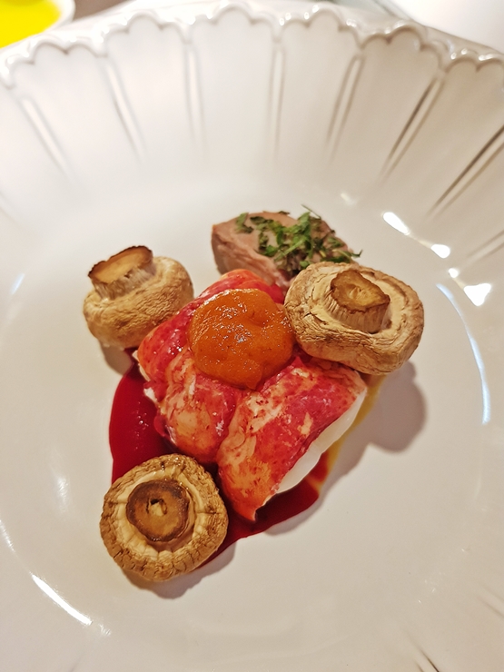 바닷가재. 개인적으로 갑각류는 새우를 최고로 꼽고 그 다음으로 게를 꼽는다. 바닷가재가 맛있긴 하지만 새우나 게에 비해 맛이 많이 연하고 그 값어치를 못하기 때문이다. 리스토란테 에오의 바닷가재 요리는 바닷가재의 비교적 연한 맛을 소스를 사용해서 잘 보충했고 함께 나온 양송이 버섯도 맛있었다.