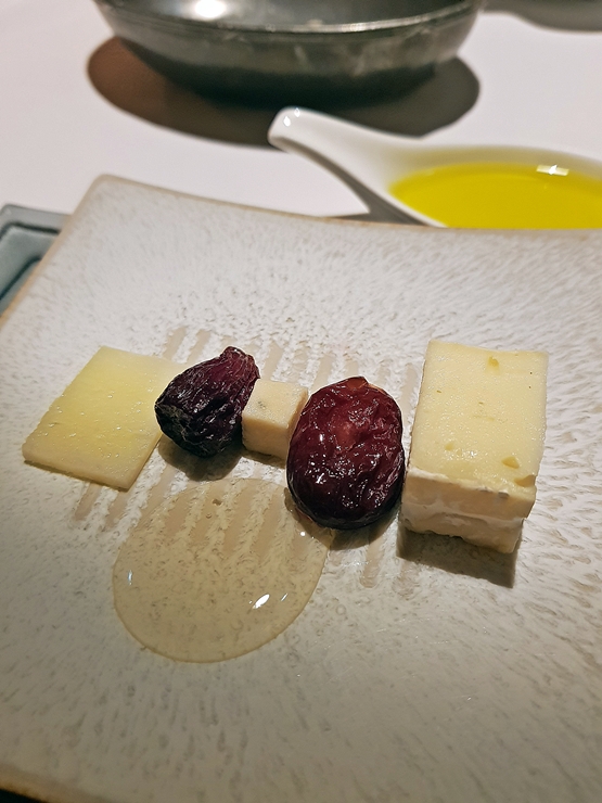 너무 오래 전에 방문을 한 것이라 코스 요리 구성이 잘 기억이 나지 않는다. 그냥 기록 보존 차원에서 올려 봐야지. 빵과 함께 제공 되는 치즈. 짭짤한 맛이 좋았다. 빵과 함께 먹으면 좋다.