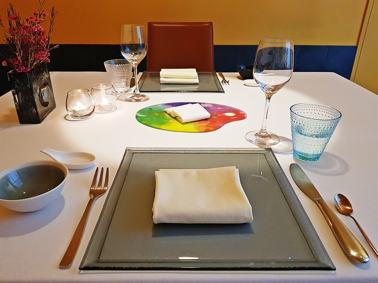 테이블은 넓고 편안하게 되어 있다. 테이블이 좁으면 음식을 즐길 때 답답함을 느끼는 경우가 있는데, 그런 답답함을 느낄 수 없었다. 테이블 데코레이션은 상당히 모던하고 깔끔하게 되어 있다. 좌석에 앉자마자 편안함을 느낄 수 있었다.