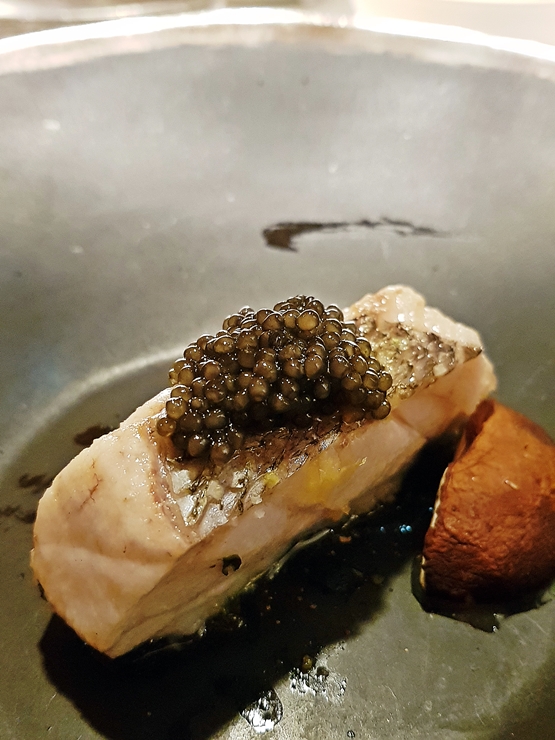 메인으로 주문한 민어. 스테이크와 민어 중에 하나를 고를 수 있는데 민어를 골랐다. 고기를 좋아하는 나에게 있어서 굉장히 큰 모험이자 도전이었다. 민어 위에 캐비어를 올렸다. 민어와 캐비어의 조합 역시 이색적이다. 민어는 살이 부드러운 것이 특징인데, 그 특징을 잘 살려 요리했다. 부드럽고 담백하며 적당한 감칠맛을 지닌 민어에 캐비어를 올려 민어의 맛을 한층 끌어올렸다.