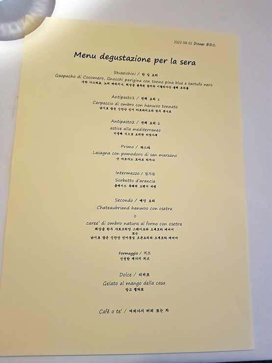후식으로 마무리. 메뉴에 적힌 구성 외에 여러 요리가 더 나오긴 했는데 사진이 없다. 가격대가 조금 나가는 곳이지만 그 가격 이상의 맛과 서비스를 보장한다. 더 현대 서울에서 수준 높은 이탈리아 요리를 즐기고 싶다면 꼭 한 번 가볼 것을 추천하는 곳이다.
