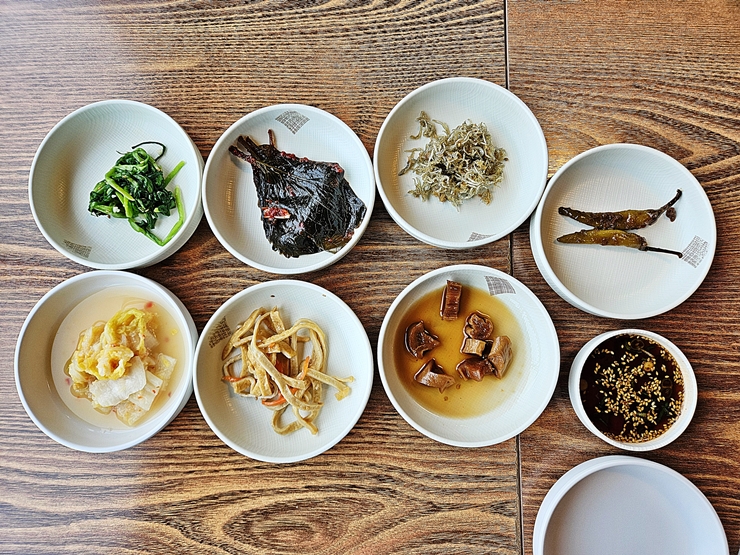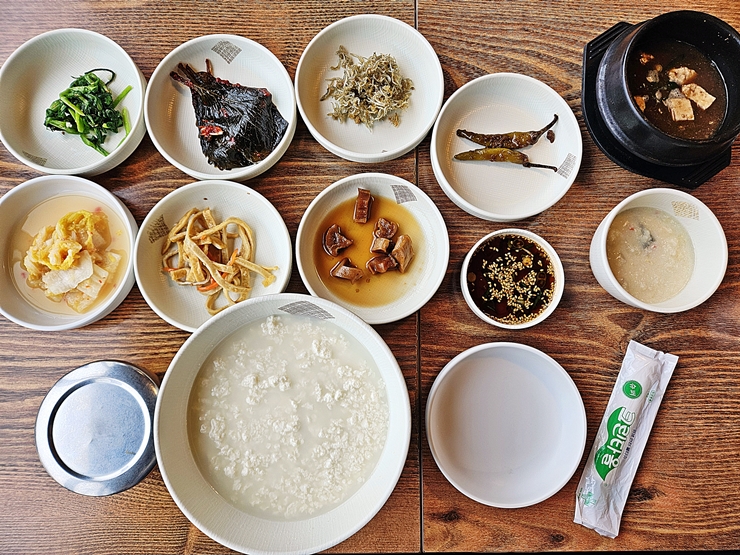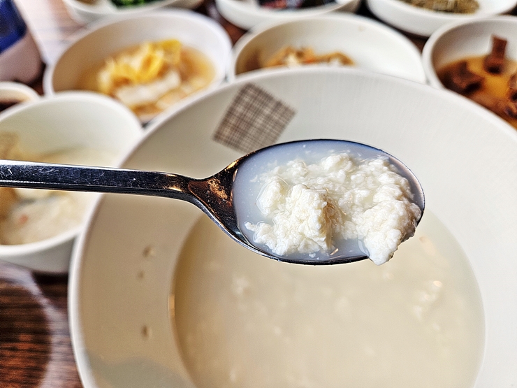 반찬과 순두부 백반. 밥, 순두부, 비지와 된장찌개가 나온다. 이곳의 비지는 참으로 맛있다. 생강 향이 살짝 나는데 그 향이 식욕을 돋우는 역할을 한다. 된장찌개는 토속적인 맛이 나는데 입에 착착 감긴다. 밥까지 먹을 경우 탄수화물을 과하게 섭취할 것 같아 통 크게 지인에게 양보를 했다. 역시 통 큰 나.