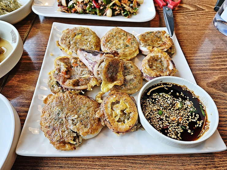 오징어 순대. 오징어 순대는 속초가 유명하지만 강릉도 의외로 오징어 순대를 많이 먹는다. 오징어 안에 쌀을 넣고 계란 물을 입혀 자작하게 구운 것인데 참으로 맛있다. 꼬막무침과 함께 먹으니 더욱 맛있게 먹을 수 있다. 방문할 때마다 항상 만족스럽게 즐기는 초당애순두부짬뽕. 강릉에 여행을 가거나 출장을 가게 될 경우 꼭 한 번 방문해 볼 것을 추천하는 곳이다.