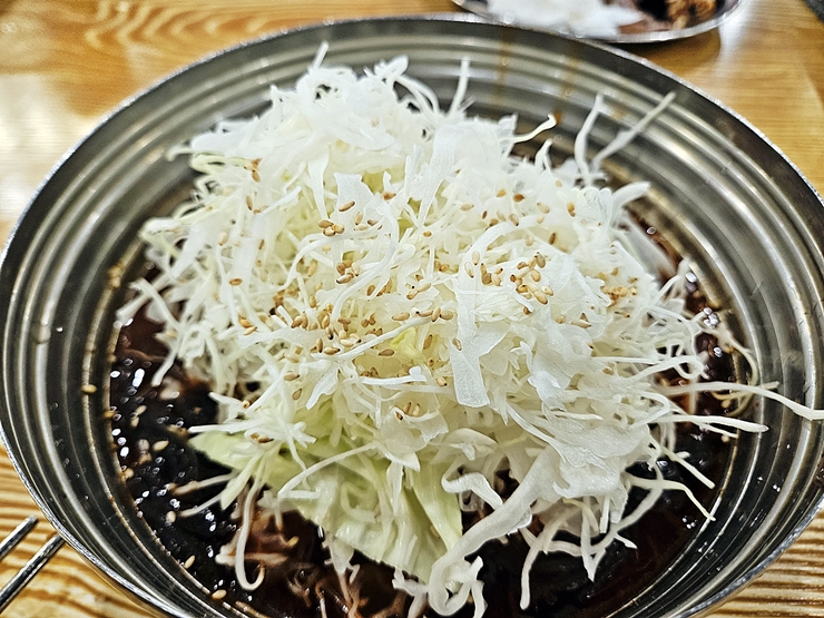 막국수. 막국수는 일반적인 스타일로 나오는 것이 아니라 쯔유 양념에 양배추를 산더미처럼 올려서 제공한다. 양념과 양배추를 잘 섞어서 먹으면 된다. 닭 장작구이만큼의 감동을 느낄 수 없지만 그래도 가격을 고려하면 충분히 맛있는 막국수다. 닭 장작구이 최고봉이라 말할 수 있는 신호등 장작구이. 서오릉에서 맛있는 닭 장작구이를 먹고 싶다면 꼭 한 번 가볼 것을 추천하는 곳이다.