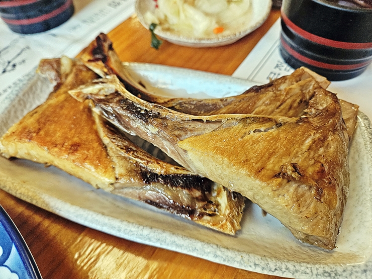 참치 갈비 구이. 참치는 워낙 사이즈가 크기 때문에 뼈에 붙은 고기가 상당히 많다. 뼈에 붙은 고기가 맛이 있다는 말이 있듯이 참치 뼈에 붙은 고기도 참 맛있지. 간장 양념을 사용해서 구웠는데 짭짤한 맛과 참치의 맛이 참 잘 어울린다. 이 역시 참으로 훌륭한 소주 안주라고 할 수 있다.