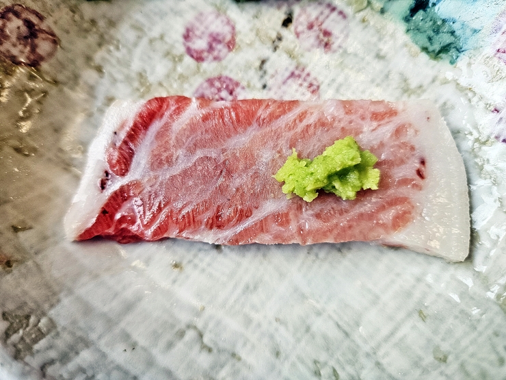 사진을 참으로 많이 찍었지만 귀찮으니 참치 사진은 여기까지만 올려야지. 뱃살의 경우 와사비를 듬뿍 올려 먹으면 좋다. 와사비가 맵지 않을까 싶지만 참치의 지방질이 와사비의 매운 맛을 중화 시켜 단 맛을 느끼게 한다. 참치 한 점에 소주 한 잔을 마시니 나도 모르게 과음을 하고 말았다.