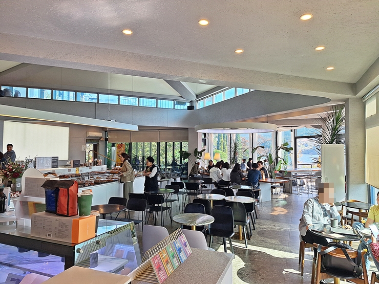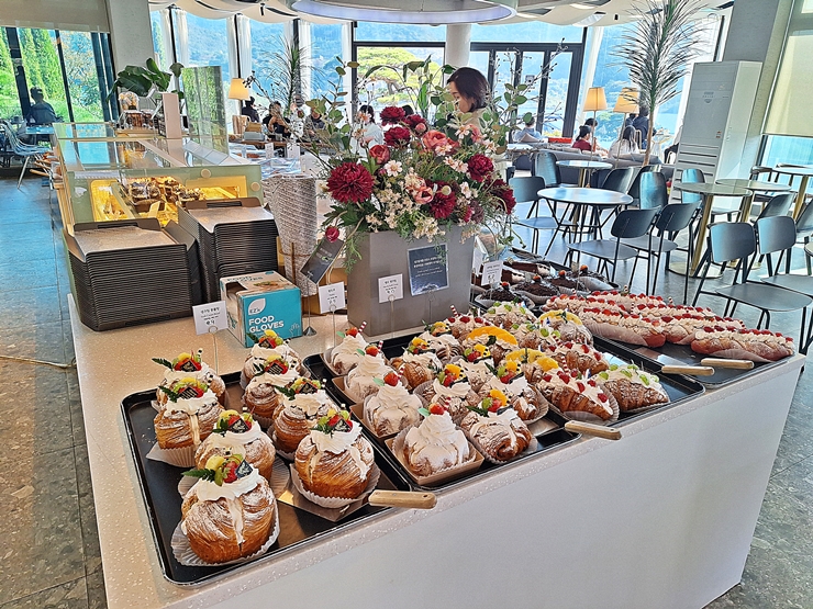 카페 외곽을 따라 테이블이 상당히 많이 배치 되어 있다. 우리가 방문했을 때는 거의 대부분의 자리가 비어 있었는데, 우리가 다른 곳으로 이동 하려고 할 때는 거의 대부분의 자리에 고객들이 앉아 있었다. 이렇게 날씨가 좋은 날에는 역시 풍경을 바라보며 커피를 즐기는 것이 좋지. 사람 마음은 다 똑같은 것 같다. 좋은 자리를 잡은 후 카페 내부에 가서 구경을 좀 하고 일용할 양식을 둘러 보기로 했다.