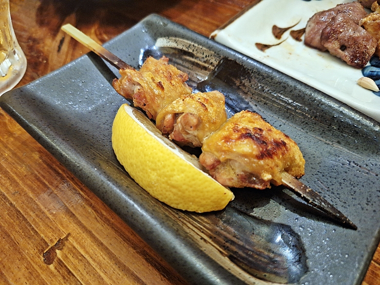 닭 허벅지 꼬치. 꼬치를 하나 정도 더 먹고 싶어서 주문했다. 닭 허벅지는 닭 다리 살의 부드러움과 가슴살의 맛을 함께 느낄 수 있는 아주 좋은 부위다. 겉은 바삭하고 속은 촉촉하게 잘 구워진 닭 꼬치가 상당히 맛이 좋다. 지금 생각해 보니 좀 더 무리를 하더라도 더 과식을 해야 했었다. 괜히 아쉽네, 흑흑흑. 다음 출장 때는 맛있는 것을 더욱 많이 먹어야지.