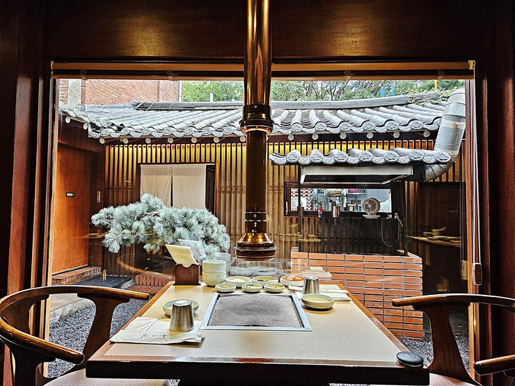 우린 이렇게 중정을 딱 바라볼 수 있는 곳에 자리를 잡았다. 평일 점심에 이런 곳에 올 수 있는 기회는 흔치 않으니 즐길 수 있을 때 마음껏 즐겨야지. 사실 이런 좋은 분위기를 제대로 즐기려면 술이 필요하다. 하지만 나나 지인 모두 술은 마실 수 없는 자리였기 때문에 술 없이 고기를 먹었지. 술 없이 고기를 먹는 것도 어려운 일이고, 이런 좋은 분위기를 술 없이 즐기는 것도 몹시 어려운 일이다.