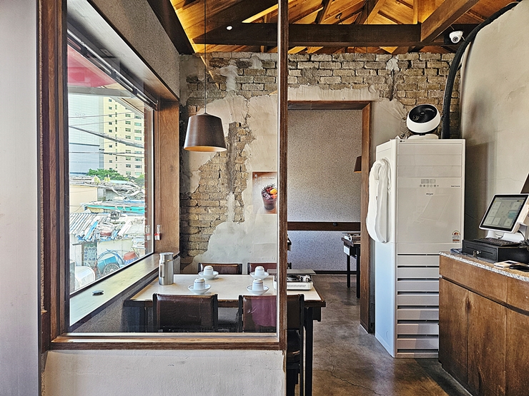 내부 모습. 내부는 뭔가 짓다 만 것 같은 느낌을 주는 인테리어다. 이런 인테리어가 몇 년 전에 잠시 흥행을 했다. 이런 인테리어의 인기가 빠르게 사라지자 이런 모습을 보기 어려워졌다. 그때는 참 보기 좋지 않았는데, 지금 보니 괜히 반갑고 좋네. 우리는 예약을 하고 갔기 때문에 비교적 편안한 자리로 안내를 받았다. 언제나 많은 고객들이 오기 때문에 조용한 식사를 즐기기는 무리가 있으니 편안한 자리로 예약을 하는 것이 좋다.
