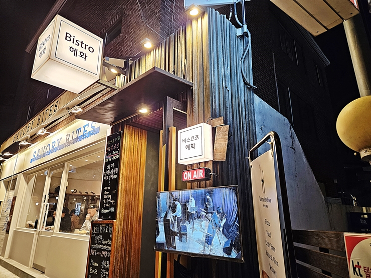 오랜만에 대학로에서 약속이 잡혔다. 대학 다닐 때는 대학로에 연극 보러 종종 가곤 했는데, 이제 나이가 들어서 그런지 대학로 분위기가 어색하고 낯설다. 그리고 무엇보다 대학로까지 갈 체력이 없다. 지치고 비루한 몸을 이끌고 먼 길을 가는 것은 굉장히 어려운 일이지. 하지만 반가운 지인과 약속이 잡혔기 때문에 케토톱 든든하게 붙인 후 룰루랄라 대학로에 있는 비스트로 혜화에 갔다. 비스트로 혜화는 재즈를 즐기며 다양하고 맛있는 요리와 술을 즐길 수 있는 곳이다.