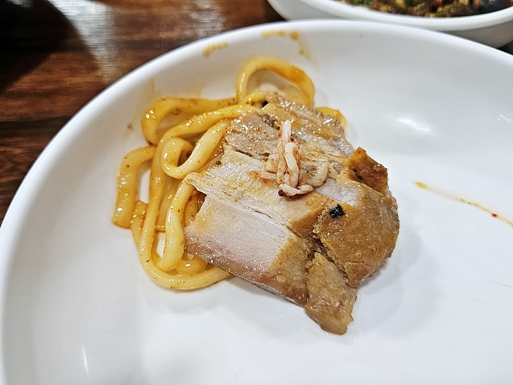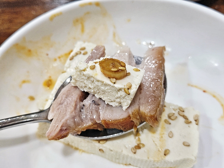 수육에 두부를 올려서 맛있게 냠냠. 단백질과 단백질이 함께 만나니 근손실에 대한 우려가 없었다. 뭐 워낙 근육이 없는 몸이기도 하지만 있는 근육은 잘 유지하도록 해야지. 대전에서 맛있는 수육과 칼국수를 즐기고 싶다면 한 번 가볼 것을 추천하는 곳이다.