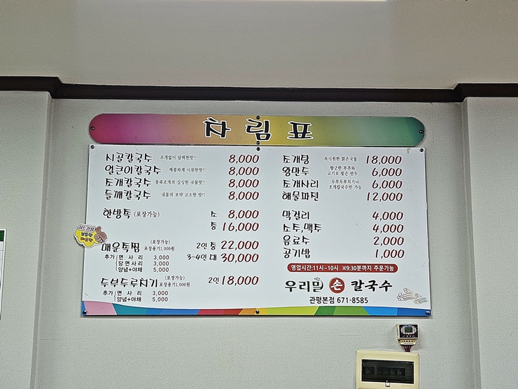 메뉴. 시골 칼국수, 얼큰이 칼국수, 조개 칼국수, 들깨 칼국수, 족발, 매운족찜, 두부 두루치기, 조개탕, 왕만두와 해물파전을 판매하고 있다. 나는 가벼운 식사를 하기 위해 방문을 했으니 두부 두루치기를 주문했다. 두부 두루치기를 주문하니 2인분의 양이 나오는데 괜찮다고 물어본다. 훗. 두부는 맛이 좋고 건강에도 좋기 때문에 아무런 무리가 없다고 말씀 드렸다.