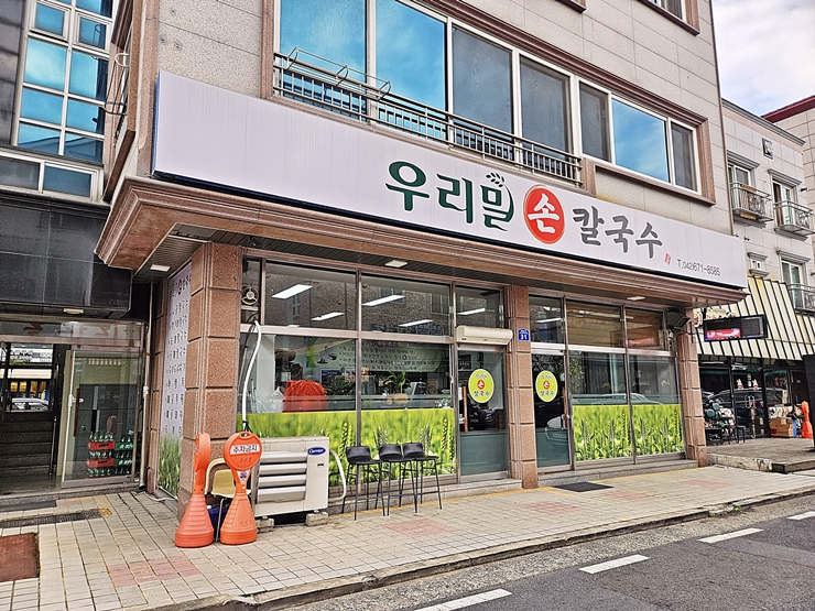 계속해서 이어지는 대전 먹거리 포스팅. 출장을 가기 전까지는 몰랐는데, 대전에는 칼국수 전문점이 많다고 한다. 그 말을 듣고 보니 의외로 쉽게 칼국수 가게를 볼 수 있었다. 난 칼국수를 그다지 좋아하는 편이 아니기 때문에 칼국수 가게에 가서 다른 요리를 먹기로 결정했지. 그렇게 방문한 우리밀생칼국수. 간판은 우리밀손칼국수로 되어 있는데 검색을 하면 우리밀생칼국수로 나온다.