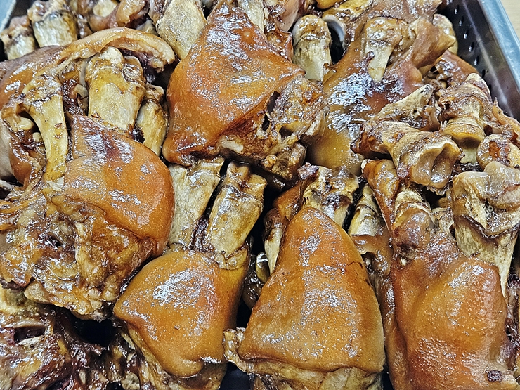 가게 안으로 들어가니 족발이 있었다. 족발이 있는 모습이 신기해서 사진을 한 장 찍었다. 그 후에 메뉴를 보니 족발도 판매하고 있었다. 오, 칼국수와 족발의 조합이라니. 지금껏 경험해 보지 못한 신선한 조합이다. 족발은 차게 먹어도 맛있고 따뜻하게 먹어도 맛있고 그냥 먹어도 맛있고 양념과 함께 먹어도 맛있다.