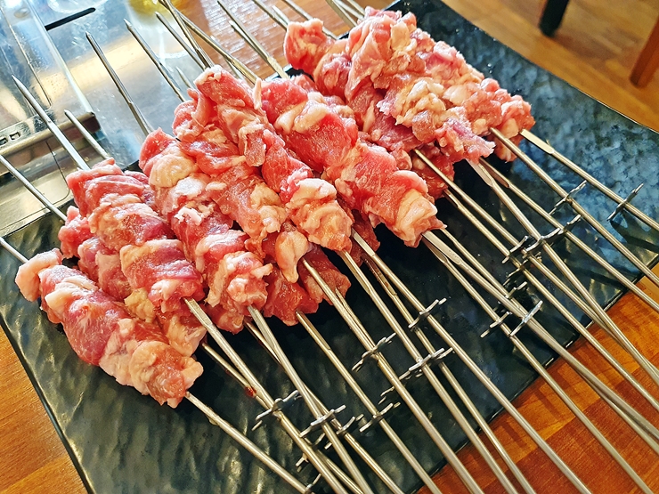 양꼬치. 양꼬치는 기본 맛과 매운맛으로 고를 수 있는데 기본 맛을 골랐다. 내가 매운 음식을 워낙 못 먹기 때문이기도 하고 양꼬치는 양념을 따로 찍어 먹는 것이 더 맛있기 때문이다.