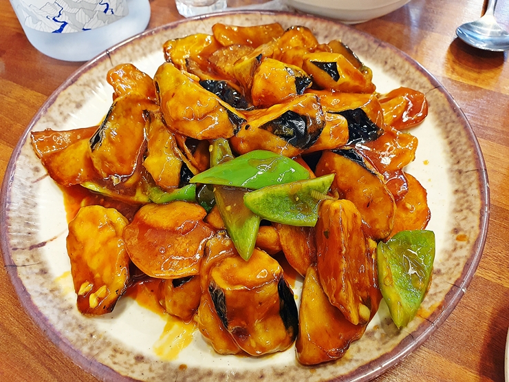 지삼선. 땅에서 나는 세가지 재료를 가지고 만든다는 뜻을 가진 요리다. 보통 가지, 피망과 감자가 들어가는데 일품양꼬치의 지삼선 역시 그 세가지 재료가 들어갔다. 가지 튀김의 맛이 예술이었는데 겉은 바삭하고 속은 촉촉했다. 소스가 묻더라도 끝까지 눅눅해지지 않아 더욱 마음에 들었다.