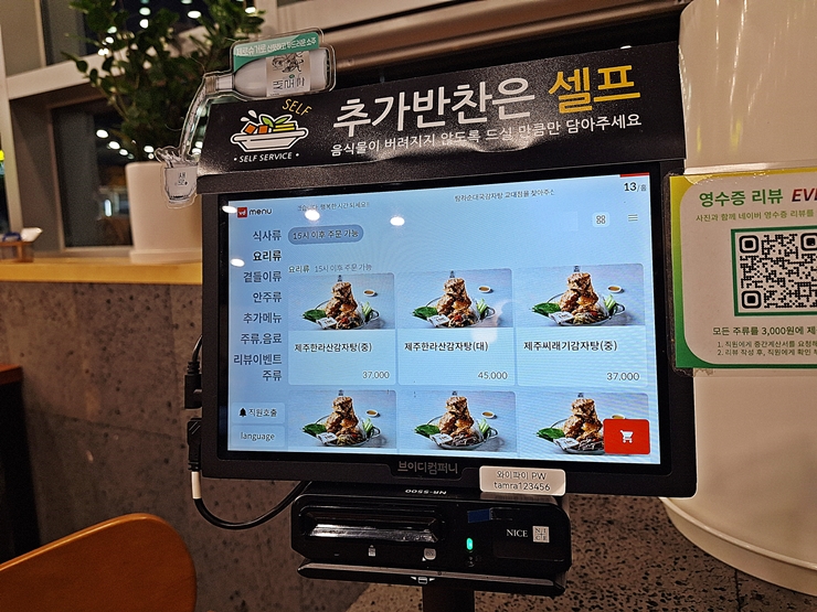 6시를 약간 넘어 도착했는데 예전에 비해 고객 수가 좀 줄어든 것 같아 걱정이 되었다. 하지만 시간이 지남에 따라 계속해서 고객이 들어왔다. 웰컴 투 탐라순대국감자탕. 감자탕 맛있어요. 사랑해요, 연예가중계. 근처에 재수 학원도 있고 준 오피스 상권도 있어서 고객들이 줄어들지 않은 것 같아 다행이다.