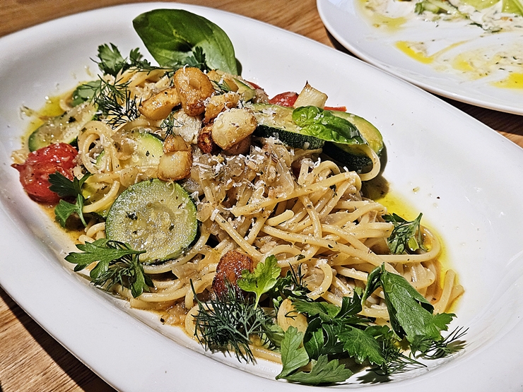 허브 알리오 올리오. 기본적인 알리오 올리오에 마늘, 주치키, 방울 토마토와 다양한 허브를 넣어 만든 것이다. 마늘이 들어가면 음식이 맛 없을 수가 없지. 만족감이 상당한 요리였다.