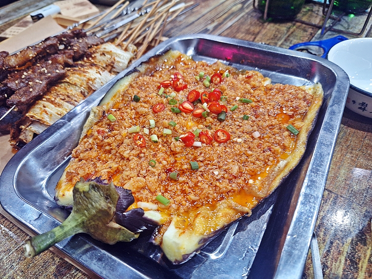 이날의 베스트였던 가지 구이. 가지를 구운 후 그 위에 고기, 양파, 고추와 쪽파를 올린 요리다. 혹시 이게 엄마 가지려나. 가지는 내가 참 좋아하는 채소인데 구워 먹어도 맛있고 튀겨 먹어도 맛있고 조림으로 먹어도 맛있다. 이거 하나로 맥주 두 병은 그냥 가볍게 마셨다.