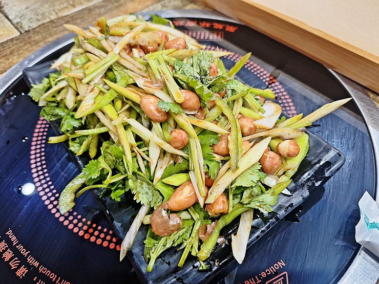 대파 고수 무침. 대파, 고수와 땅콩을 넣어 시원하게 무친 요리다. 중국인들은 고수를 굉장히 많이 먹는 편이다. 그래서 이렇게 고수가 메인인 요리가 많다. 고수를 먹지 못하는 사람에게는 참으로 지옥과도 같은 상황이 아닐 수 없겠지만, 난 무리 없이 잘 먹어서 맛있게 먹었지. 꼬치를 먹고 입이 좀 물린다 싶으면 이 대파 고수 무침을 먹으면 좋다.
